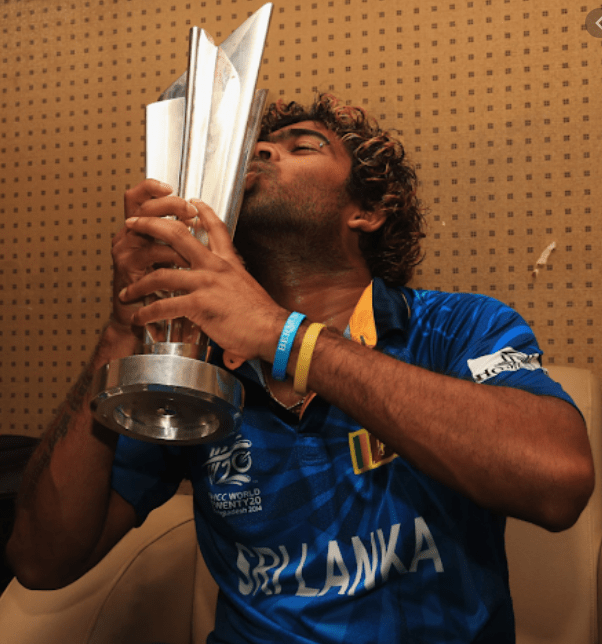 | Lasith Malinga cherishing the moment of winning with ICC T20I WC 2014 |
