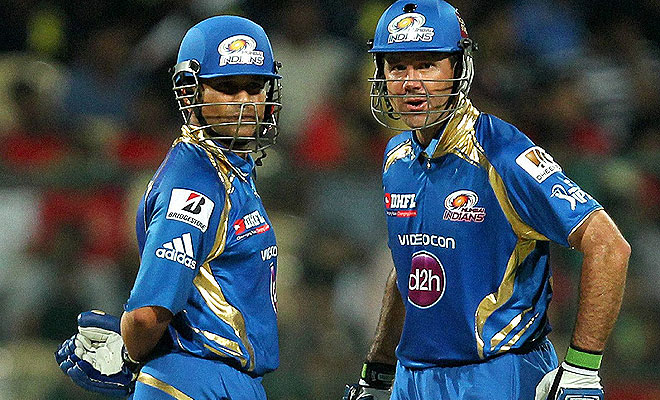 | Sachin Tendulkar and Ricky Ponting playing for Mumbai Indians |