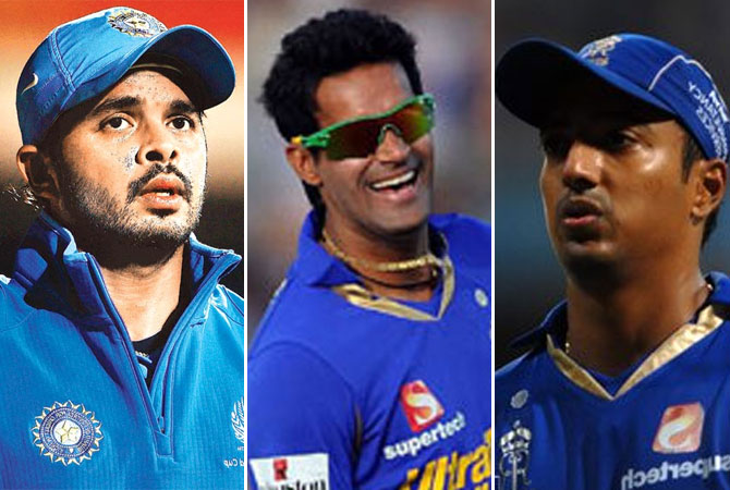 | Sreesanth, Ajit Chandila and Ankit Chavan who were involved in spot fixing |