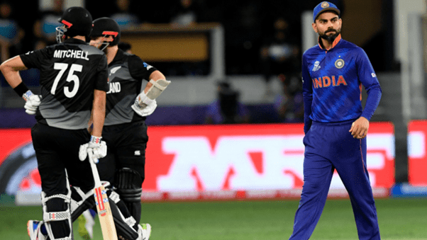 New Zealand razed India by chasing 111 runs in 14.3 overs by 8 wickets. The match was played at the Dubai International Stadium on 31st October. New Zealand were absolutely brutal with ball & bat as their NRR (Net Run Rate) has peaked and it is +0.765. India now is almost out of the tournament as their fate is in another’s hand (*Afghanistan needs to defeat New Zealand). But first they need to win with huge margin against Afghanistan, Namibia & Scotland. The NRR of India is -1.609 which has put them on the brink of elimination.